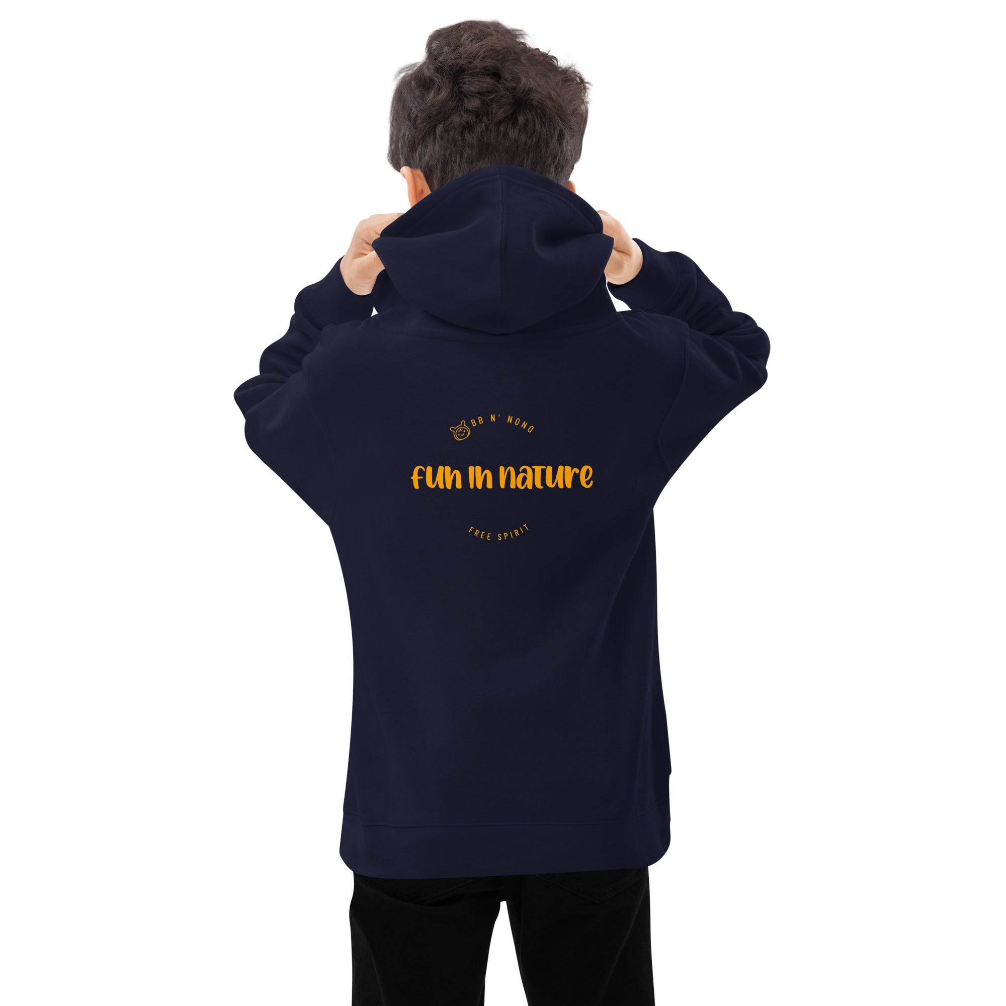 Fun in nature with logo - Kids fleece hoodie (back print)